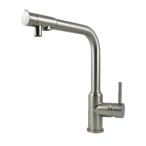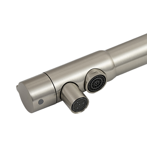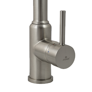 Смеситель Kaiser Teka совмещен с краном для питьевой воды. Особенность модели заключается в сдвоенном изливе, внутри которого проходят две трубки, для питьевой и проточной воды. Два аэратора для раздельного выхода проточной и фильтрованной воды, исключают возможность их смешивания. Подача питьевой воды осуществляется переключателем на конце излива.