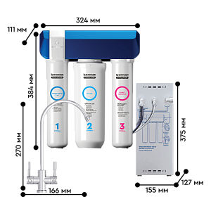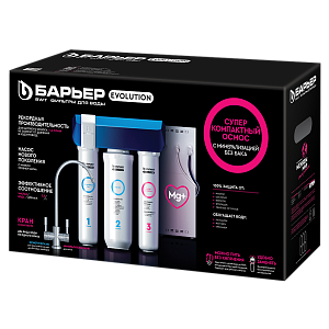 • Суперкомпактный осмос БАРЬЕР – по размерам сопоставим с обычным проточным фильтром и помещается даже в самом ограниченном пространстве под мойкой;