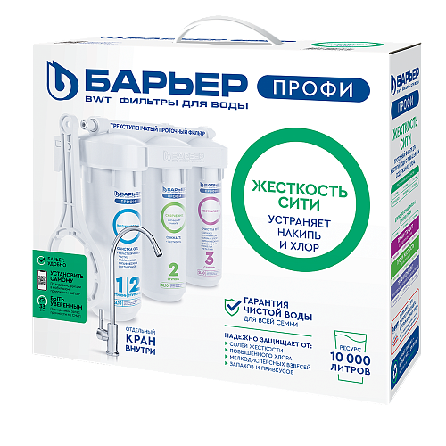 3."БАРЬЕР ПРОФИ Посткарбон". Финишная очистка и кондиционирование, устраняет неприятные привкусы, остаточный хлор и тяжелые металлы.