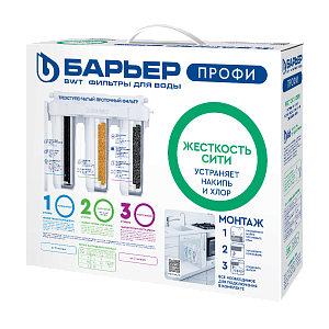 БАРЬЕР ПРОФИ Жесткость Сити отличается от других умягчающих фильтров БАРЬЕР ПРОФИ засыпкой картриджей. Ее рецептура не только умягчает воду, но и обеспечивает более глубокую очистку от хлора и побочных продуктов хлорирования.