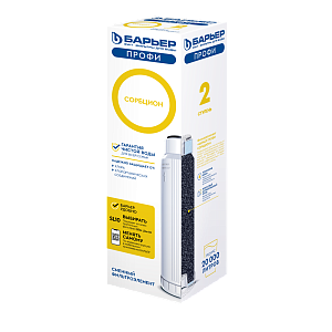 БАРЬЕР ПРОФИ Сорбцион – сменный картридж для фильтров БАРЬЕР ПРОФИ Осмо 100, БАРЬЕР ПРОФИ Осмо 100 М, БАРЬЕР ПРОФИ Осмо 100 Boost, ПРОФИ Осмо 100 Boost М. Устанавливается в качестве второй ступени. Необходим для защиты обратноосмотической мембраны от микрочастиц хлора и хлорорганических соединений.