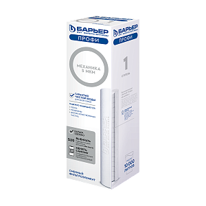 Используется в качестве первой ступени в фильтрах БАРЬЕР ПРОФИ Стандарт, БАРЬЕР ПРОФИ Жесткость, БАРЬЕР ПРОФИ Осмо, БАРЬЕР ПРОФИ Осмо М, ПРОФИ Осмо 600, а также выступать, как самостоятельный магистральный фильтр в БАРЬЕР ПРОФИ Инлайн.